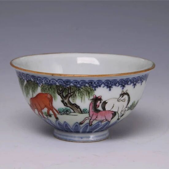 瓷韻千年!AI講解員帶您解鎖清乾隆款青花粉彩四馬紋杯的魅力
